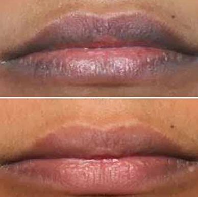 Description: Permanent lip color can be applied to give more definition, to correct uneven lips or to add fullness to the lips. This can be done by applying a simple liner or filling in the entire lips. The end result will allow you to opt for a simple lip gloss!